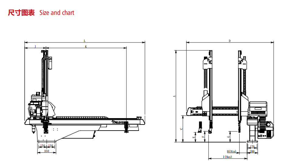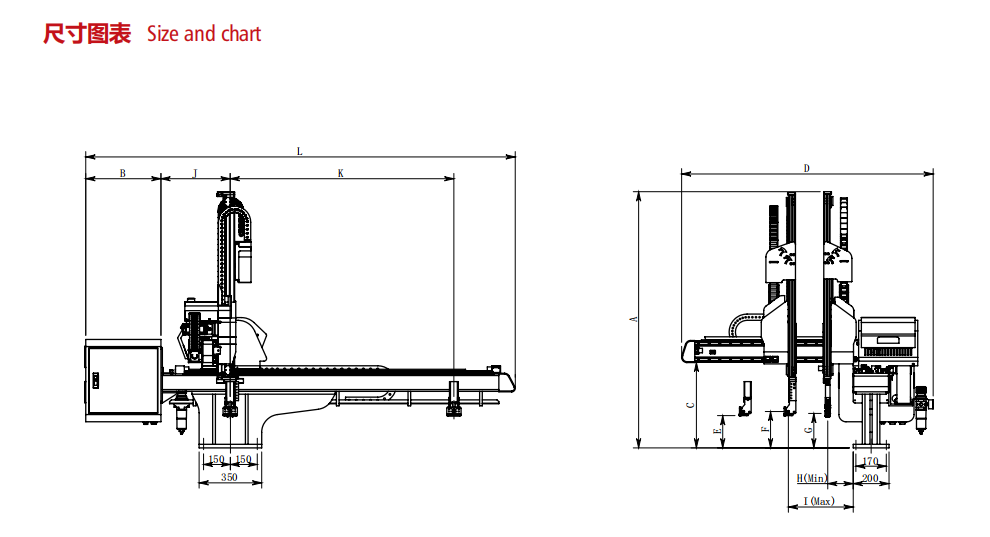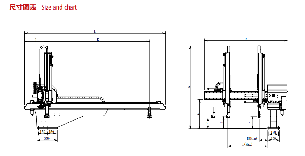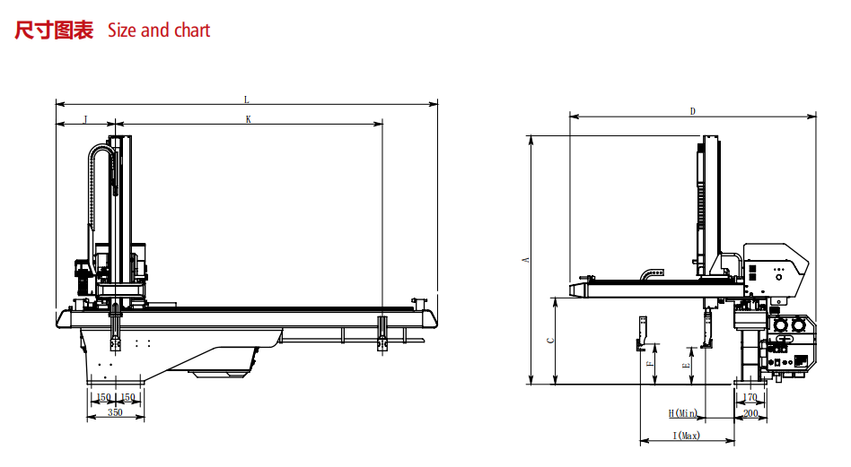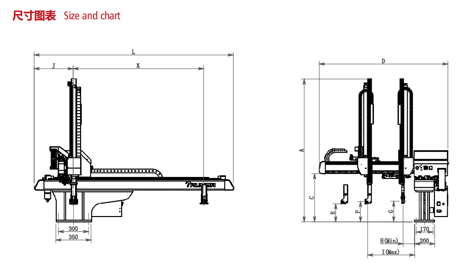 適用于150T--400T注塑機(jī),機(jī)械手可選擇單臂或者雙臂,橫行伺服電機(jī)驅(qū)動,引拔、上下氣缸驅(qū)動。