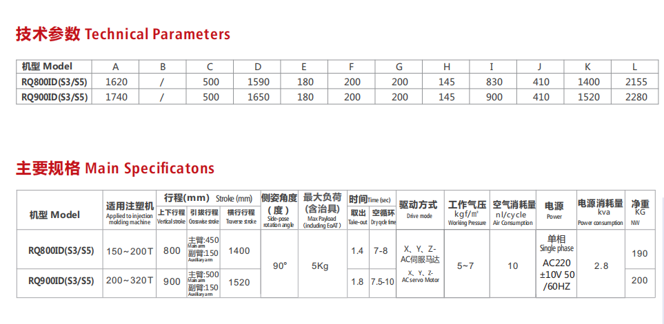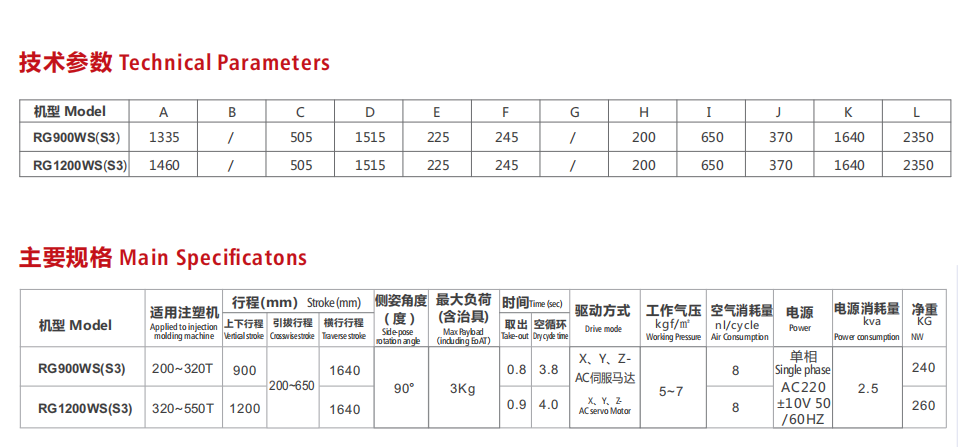 適用于200T--550T注塑機(jī),薄壁專用機(jī),雙截手臂,XYZ三軸采用日本松下伺服驅(qū)動,搭配日本THK導(dǎo)軌,噪音低,框架式雙導(dǎo)軌結(jié)構(gòu)動作平穩(wěn),快速。