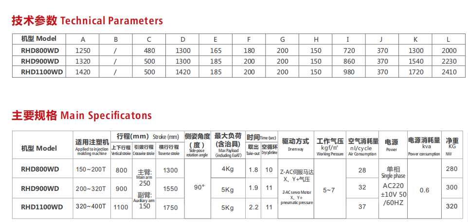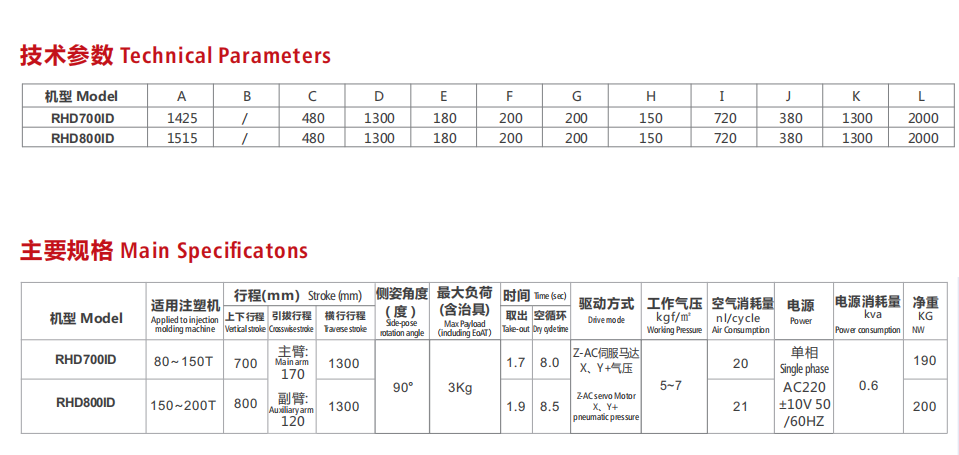適用于80T--220T注塑機(jī),機(jī)械手可選擇單臂或者雙臂,橫行伺服電機(jī)驅(qū)動,引拔、上下氣缸驅(qū)動。
