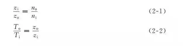 齒輪副不但可以傳遞運動角位移和角速度,而且可以傳遞力和力矩,一個齒輪裝在輸入軸上,另一個齒輪裝在輸出軸上,可以得到齒輪的齒數(shù)與其轉(zhuǎn)速成反比 [式 (2-1)],輸出力矩與輸入力矩之比等于輸出齒數(shù)與輸入齒數(shù)之比 [式 (2-2)]。