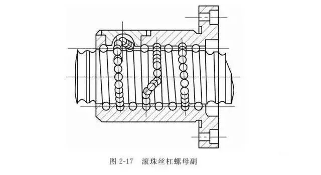 如圖2-17所示滾珠絲杠螺母里的滾珠經(jīng)過研磨的導(dǎo)槽循環(huán)往復(fù)傳遞運動與動力,滾珠絲杠的傳動效率可以達到90%。