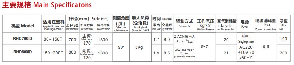 1.RHD(數(shù)字)ID/IW – 單軸伺服機械手:橫走動作是伺服驅(qū)動,其他動作為氣缸驅(qū)動。