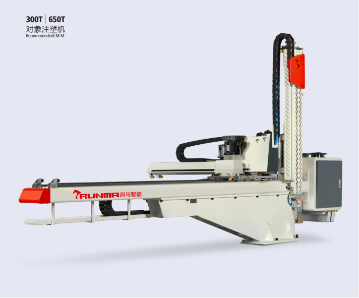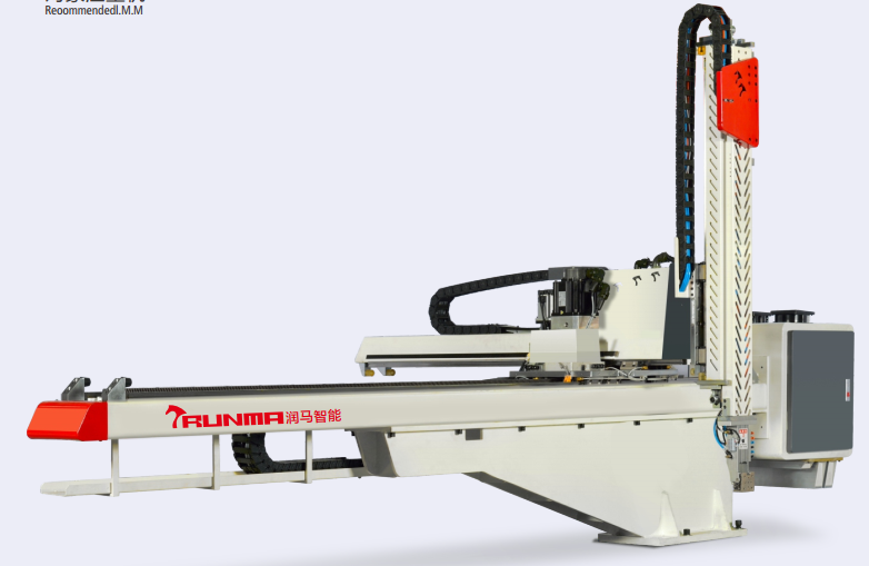 潤馬智能眾多的機械手產品中,有一款機械手是比較特殊的機型,它就是我們所說的“牛頭式”機械手,專業(yè)名稱叫“大型開放式全伺服橫走機械手”。牛頭式機械手具有三面開放特性,適用于物流卡板、大家電外殼、汽車配件、油漆桶模內貼標等等大型注塑制品的取出及應用。